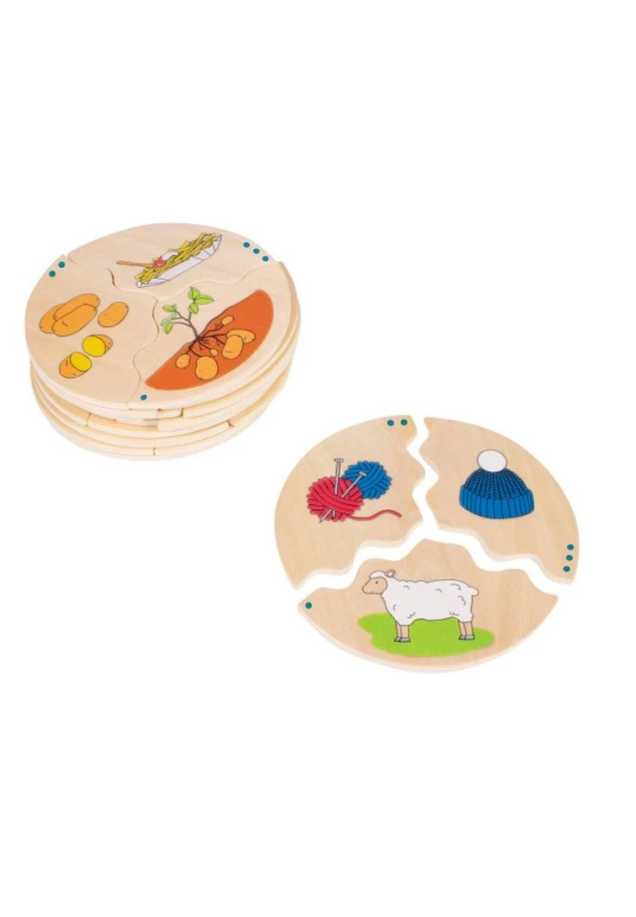 Ce puzzle favorise la combinaison logique et la compréhension des différentes étapes impliqués dans la transformation et la fabrication de produits.
