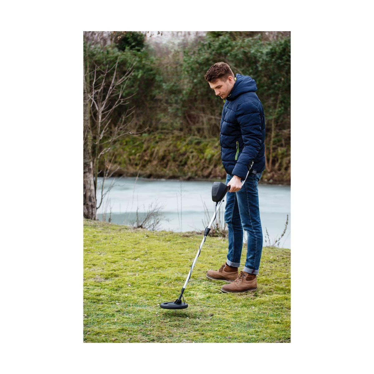 Le détecteur de métaux numérique de NATIONAL GEOGRAPHIC est très pratique et confortable à utiliser. Le manche est réglable en longueur (environ 100 – 125 cm) et il est équipé d’un accoudoir et d’une poignée rembourrés pour une utilisation confortable. Il est également équipé d’un haut-parleur intégré et d’une prise casque (prise jack 3,5 mm) pour une écoute privée.