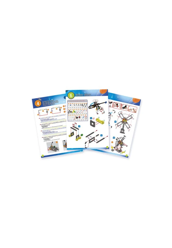 Réalisez les montages et construisez 17 modèles : phares, grande roue, hélicoptère… Plus de 130 pièces nécessaires aux montages : douille, moteur, boîtier à piles, fils connecteurs…