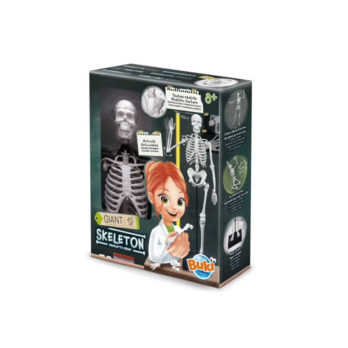 Les os du squelette ont une texture et des couleurs rĂ©alistes, ce qui rend l’expĂ©rience d’apprentissage encore plus immersive. L’enfant peut assembler les diffĂ©rentes parties du squelette pour comprendre comment elles s’emboĂ®tent et forment le corps humain. De plus, le squelette est entièrement articulĂ©, ce qui permet Ă l’enfant de le placer dans diffĂ©rentes positions, favorisant ainsi une exploration plus approfondie de l’anatomie.