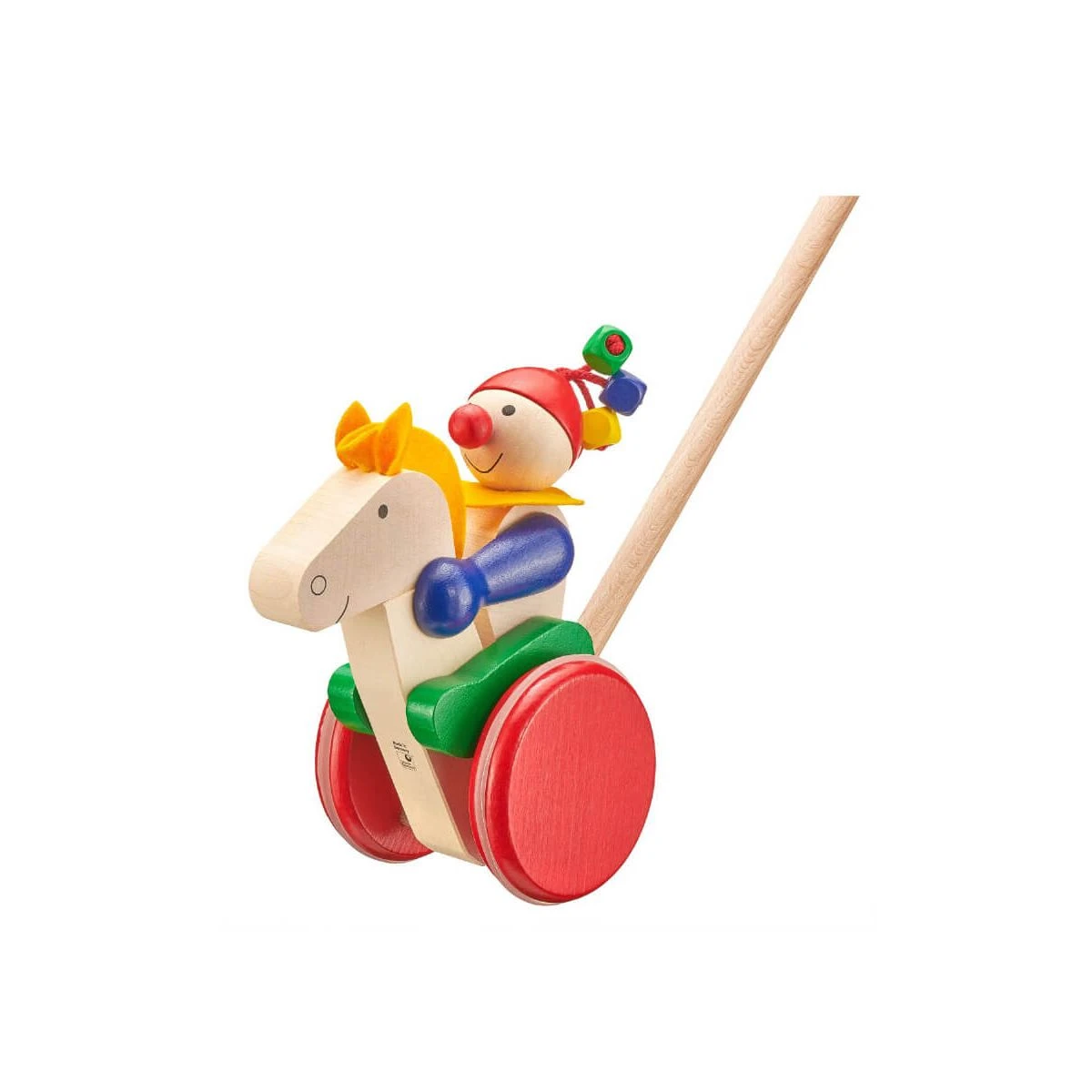 Explorez le monde de l’imagination avec notre cavalier à pousser en bois, un véritable compagnon pour votre petit aventurier. Fabriqué en Allemagne avec une qualité inégalée, ce cavalier chevauche fièrement son fidèle destrier pour des balades épiques.