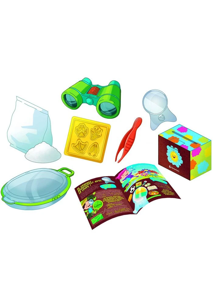 Que ce soit pour admirer les animaux, chercher leurs empreintes, trouver des fleurs ou observer les insectes, munissez-vous de ce kit complet et adapté aux enfants pour passer un moment plein de découvertes.