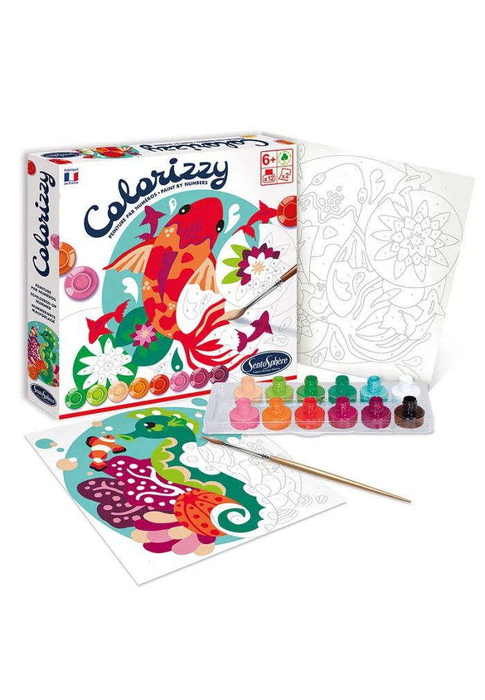 Profitez d’un agrĂ©able moment crĂ©atif pour peindre deux tableaux de peintures par numĂ©ros et donner vie Ă de superbes fonds marins illustrant d’adorables poissons et hippocampes.