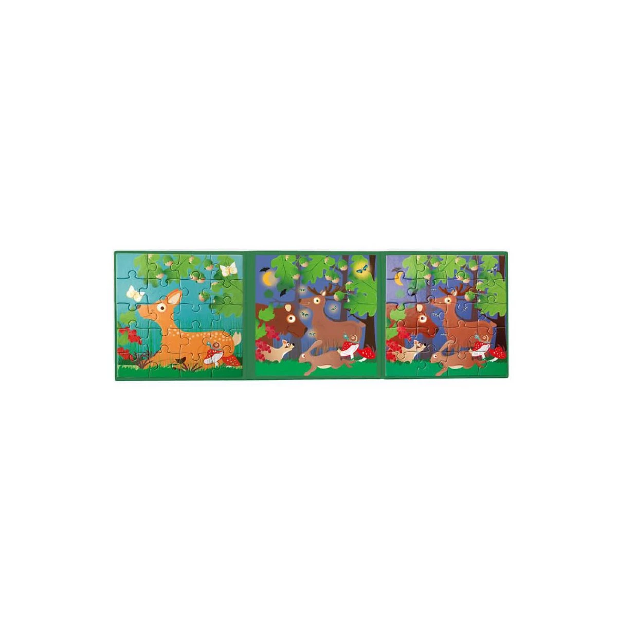 Un puzzle magnétique retraçant le chemin des animaux de la forêt