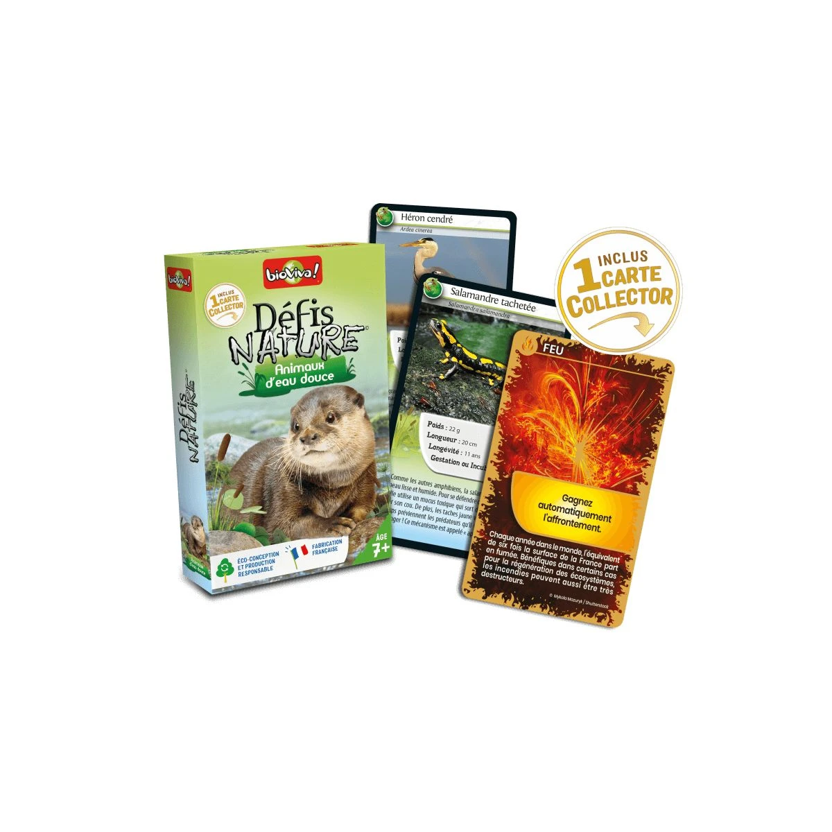 Défis Nature – Animaux d’eau douce est un jeu de cartes éducatif qui vous emmène à la rencontre des animaux les plus surprenants des lacs, des étangs et des rivières. Découvrez les espèces à préserver et apprenez-en davantage sur elles tout en vous amusant avec votre famille ou vos amis. Le jeu est fabriqué en France et est éco-conçu pour répondre aux normes environnementales. Le jeu convient à 2 à 6 joueurs de 7 ans et plus et dure environ 20 minutes.