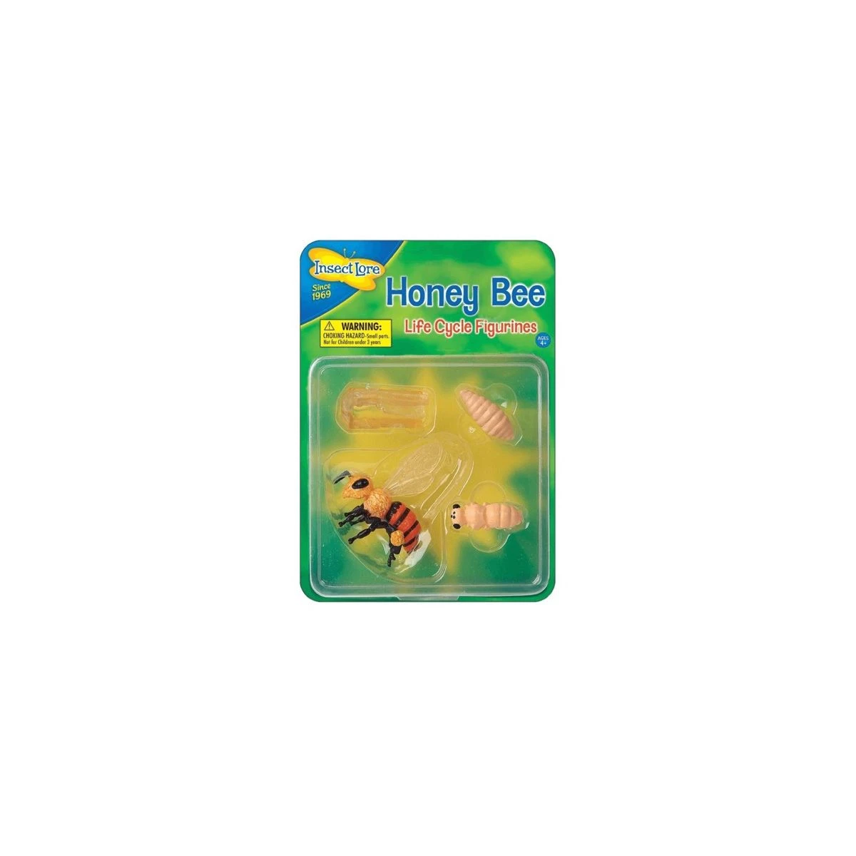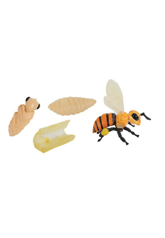 Ces figurines en plastique durable et souple reproduisent les 4 étapes principales de la transformation des abeilles qui sont : oeuf, larve, nymphe et adulte.