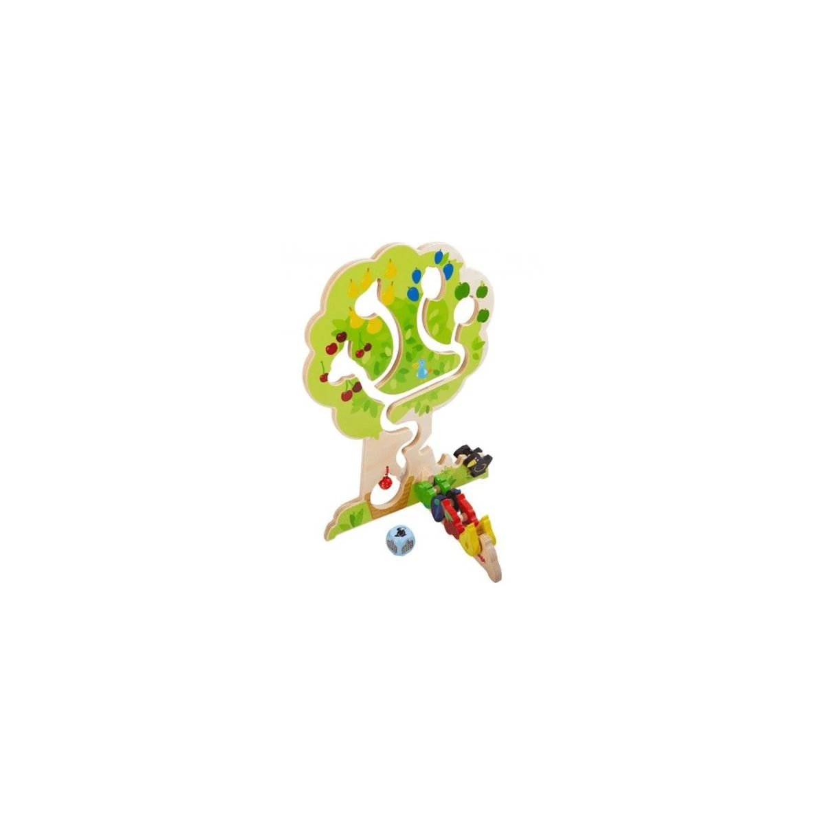 Le Jeu de motricité du Verger Haba est idéal pour initier votre tout-petit aux couleurs et aux formes. Il enseigne les premières notions de classement, tout en stimulant la motricité fine de l’enfant. Les rouleaux colorés l’entraîneront à bouger ses petites mains de façon précise. Il apprendra tout en s’amusant à trier les fruits sur rouleaux par couleur, puis les fera glisser au sommet de l’arbre pour enfin les ranger sur les racines. Un astucieux système de trous sert de marches pour faciliter l’escalade du corbeau.