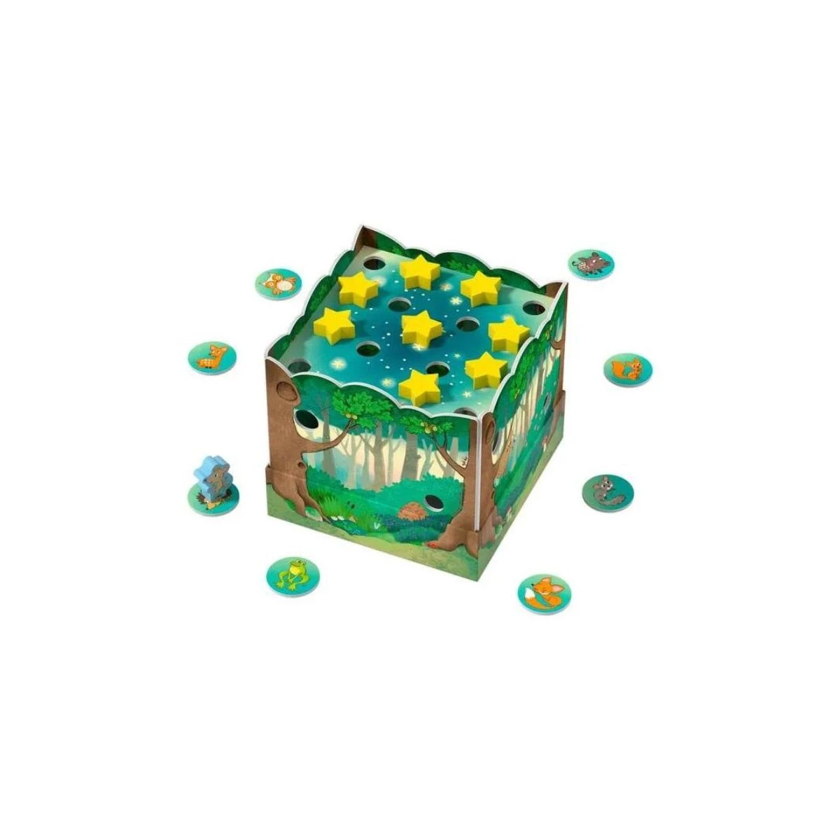 - 8 étoiles en bois : Utilisez les étoiles en bois comme repères pour marquer les emplacements où se cachent les animaux dans la forêt. Les enfants devront faire appel à leur mémoire et à leurs compétences d’observation pour les placer correctement.