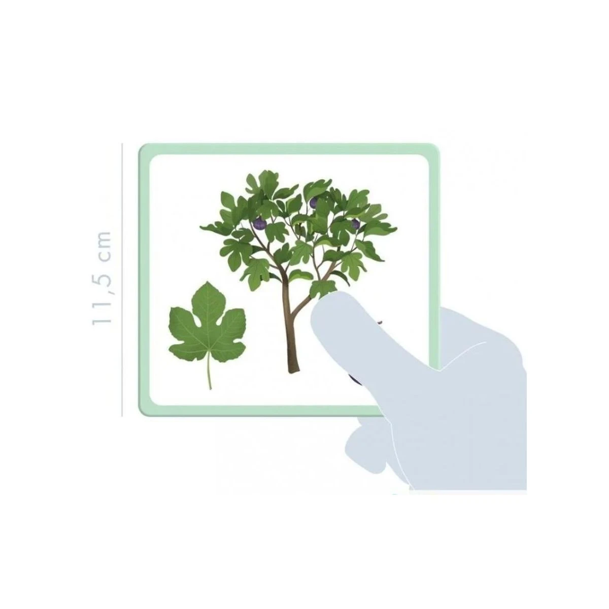 Pour les plus grands, le nom des arbres est écrit en 10 langues différentes au dos des cartes (FR, GB, D, NL, SE, ES, I, P, R, PL). Une occasion unique d’apprendre des mots dans différentes langues tout en découvrant la diversité des arbres à travers le monde.