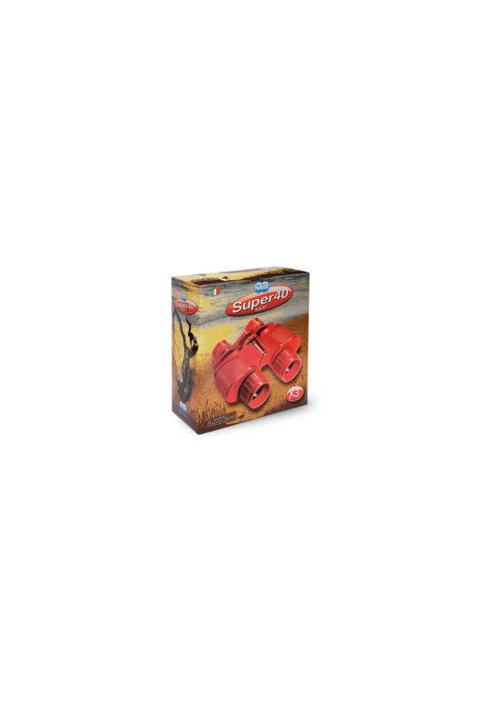 Jumelles rouges fabriquées en plastique ABS, avec un objectif de 36 mm de diamètre et régleur pour la mise au point.