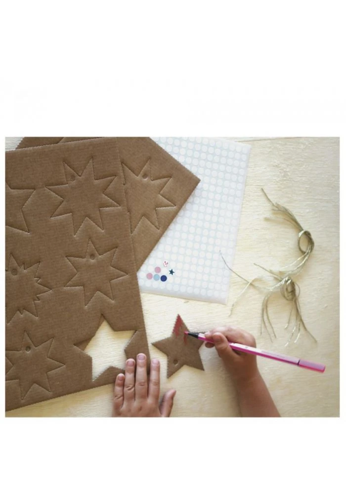 Confectionne des étoiles comme tu en as envie grâce aux différentes gommettes.