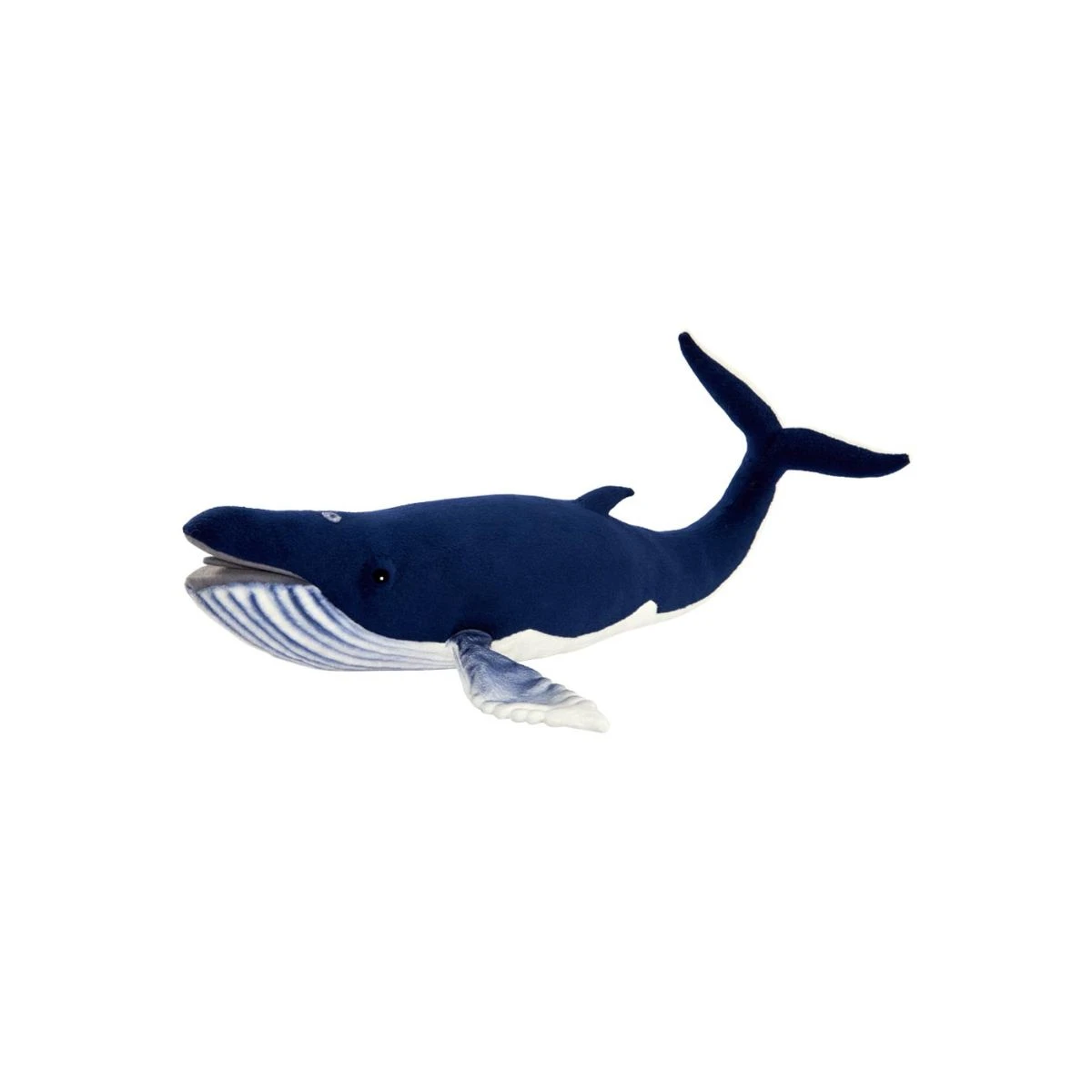 - La peluche baleine bleue de 59 cm est dotée d’un design réaliste qui suscitera l’émerveillement chez les petits et les grands. Grâce à ses détails minutieusement travaillés, cette peluche incarne toute la beauté et la grâce des baleines dans leur habitat naturel.