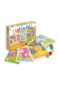 Sablimage est une gamme d’activité ludique et manuelle qui a été conçue pour que de très jeunes enfants puissent facilement, et en toute liberté, réaliser de jolis tableaux naïfs sans se salir. Chaque coffret contient :