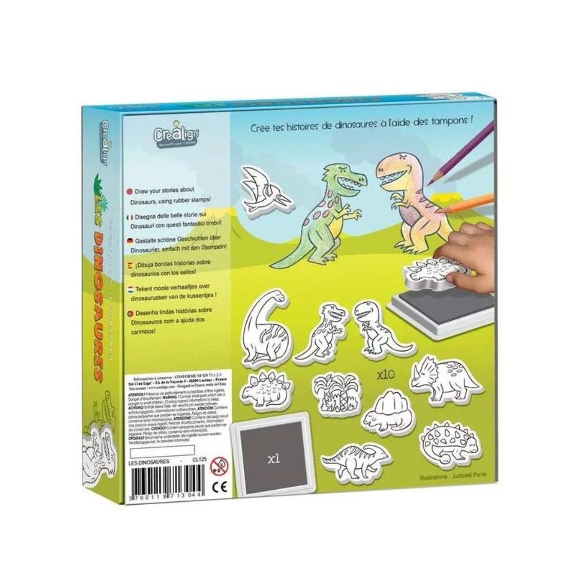 Ce coffret comprend une variété de dinosaures captivants, allant des tyrannosaures aux tricératops en passant par les vélociraptors. Les enfants pourront laisser libre cours à leur créativité en tamponnant et en coloriant leurs dessins.